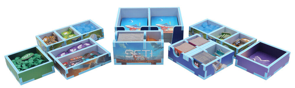 The full colour print really brings the trays to life, tying them in with the theme of the game and making it easier to see which components go where.