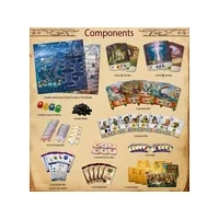 On the map, you can choose to explore its daytime side and scale the white stone of the Owl Temple. It uses unique new temple tiles that, if combined together, can become extra idol slots, and a third research token, a lantern, that brings even stronger research rewards. You can also brave the night and journey through the dark caverns of the Spider Temple. This side uses a new resource, dark tablets, used to invoke mysterious altars and place artifacts directly onto the research track to be used when ascending the track. But beware—using the dark tablets can give you strong rewards, but also cost you points should you become too ambitious!