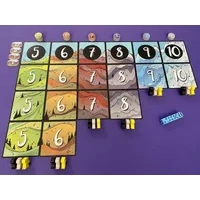 In Mountain Goats you work to move your goats to the top of 6 different mountains where they can score points as long as they stay there. You can share spaces with other goats on the way up, but there is only room for one goat at the top of each mountain. If someone else's goat moves to the mountain top, they will kick you off and you'll have to start your trek over.